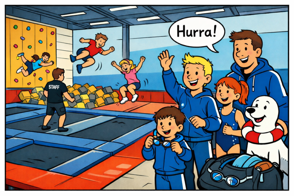 Wir gehen in die Trampolinhalle