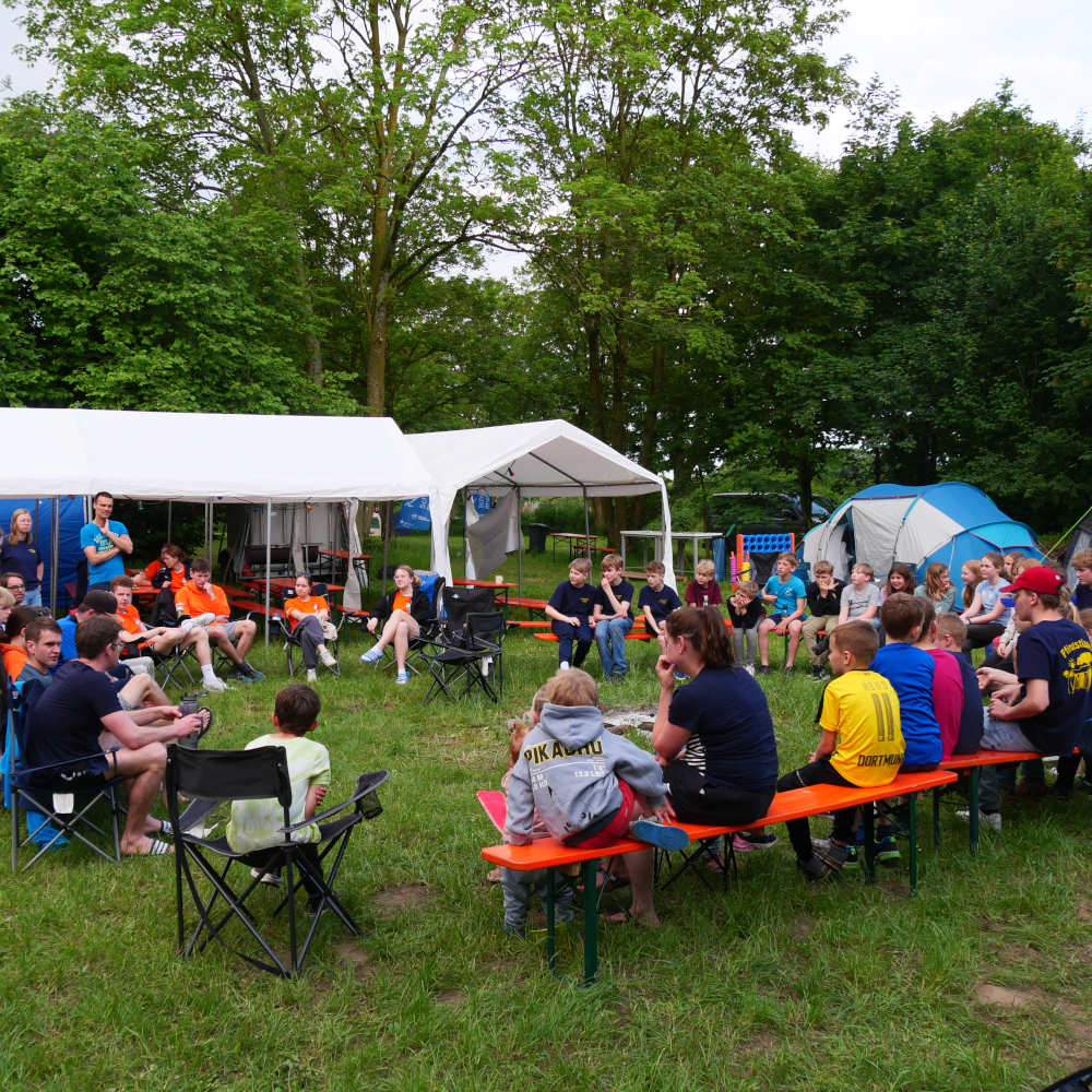 Unser Pfingstzeltlager ist vollgepackt mit unvergesslichen Highlights. Ein zentrales Element ist das abendliche Lagerfeuer, das in vielen Jahren auch von Gitarrenmusik begleitet wird. Am Feuer kommen alle Kinder und das gesamte Team zusammen, um Geschichten zu erzählen und die besondere Lagerfeueratmosphäre zu genießen. Das Zusammensein im Freien unter dem Sternenhimmel ist ein unvergesslicher Teil des Lagers.